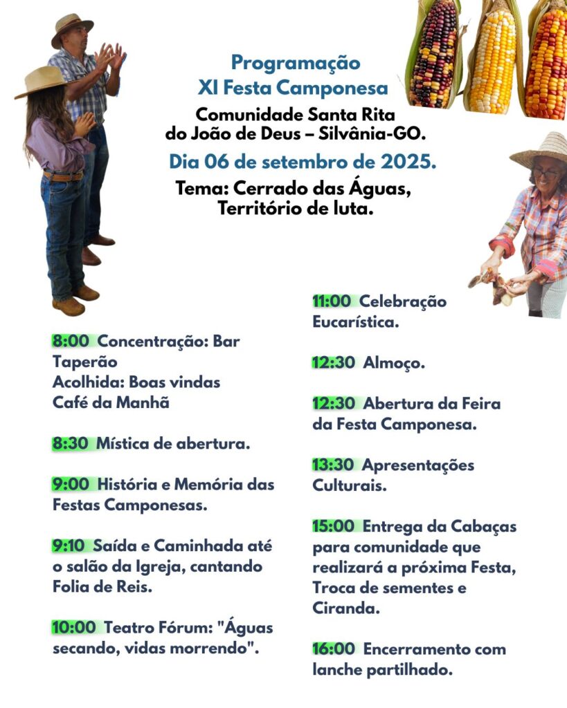 Para celebrar a cultura camponesa e fortalecer os vínculos entre comunidades rurais do município de Silvânia, grupos acompanhados pela CPT Goiás realizam anualmente a Festa Camponesa, que em 2025 chega à sua 11ª Edição. Neste ano, a atividade será sediada pela comunidade Santa Rita do João de Deus.